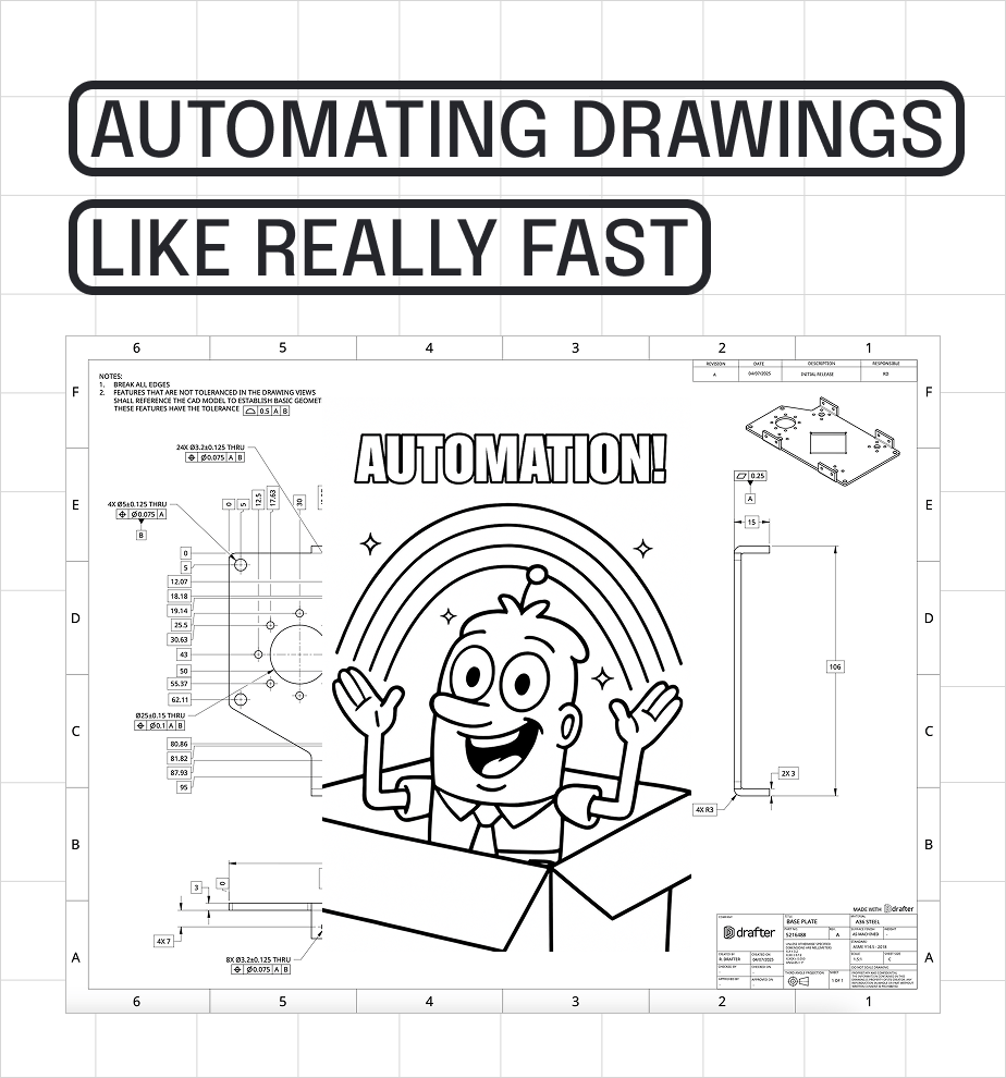 We’ve heard from hundreds of you — drawings are tedious. But unfortunately they’re also necessary. They eat up time, introduce inconsistencies, and somehow still end up missing a critical tolerance when they hit the shop floor. So we’re building a tool that takes your 3D model and turns it into a well-dimensioned, GD&T-happy, drawing-ready-for-release — automatically, in minutes.